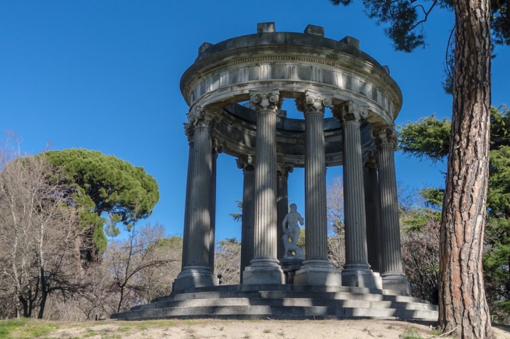 El parque, construido por orden de la duquesa de Osuna en el siglo XVIII, ofrece rincones llenos de magia, con estanques con cisnes, laberintos de plantas, templetes, ruinas falsas y hasta un búnker de la Guerra Civil. Por ello, es un lugar perfecto para caminar tomados de la mano, hacer fotos o simplemente sentarse en el césped a disfrutar de la tranquilidad.